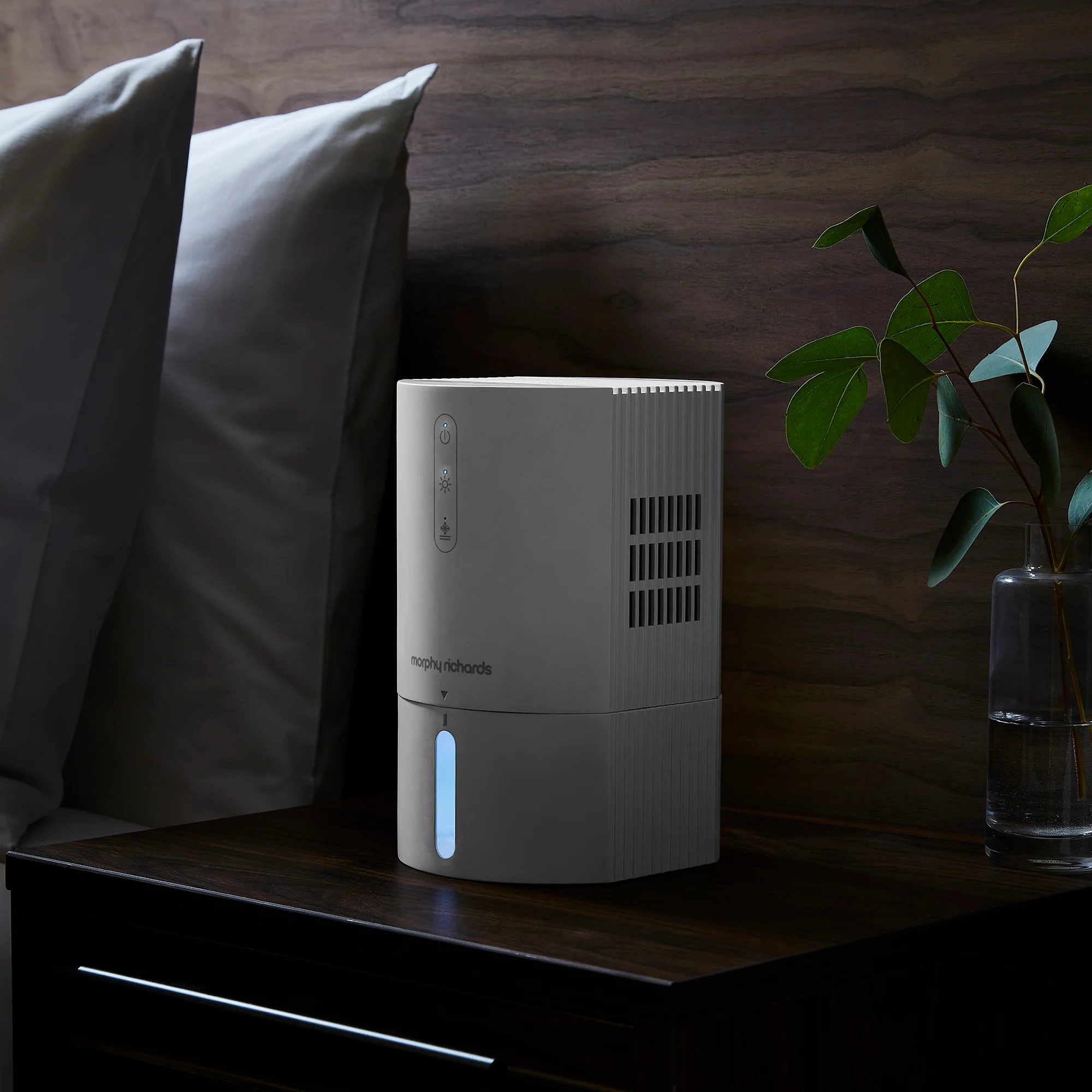 Discover our PureFresh 0.9L dehumidifier, your new go-to for a fresher, drier home. This portable, small dehumidifier is most effective for small bedroom areas, wardrobes & closets, small kitchens, caravans, window sills and drying damp walls. Plus, it is packed with smart features such as ambient lights to create a relaxing atmosphere, automatic defrosting to protect the unit, a full tank reminder and more! So, whether it’s an office or home dehumidifier you are looking for, we are pleased to present one of the best compact dehumidifiers on the market!